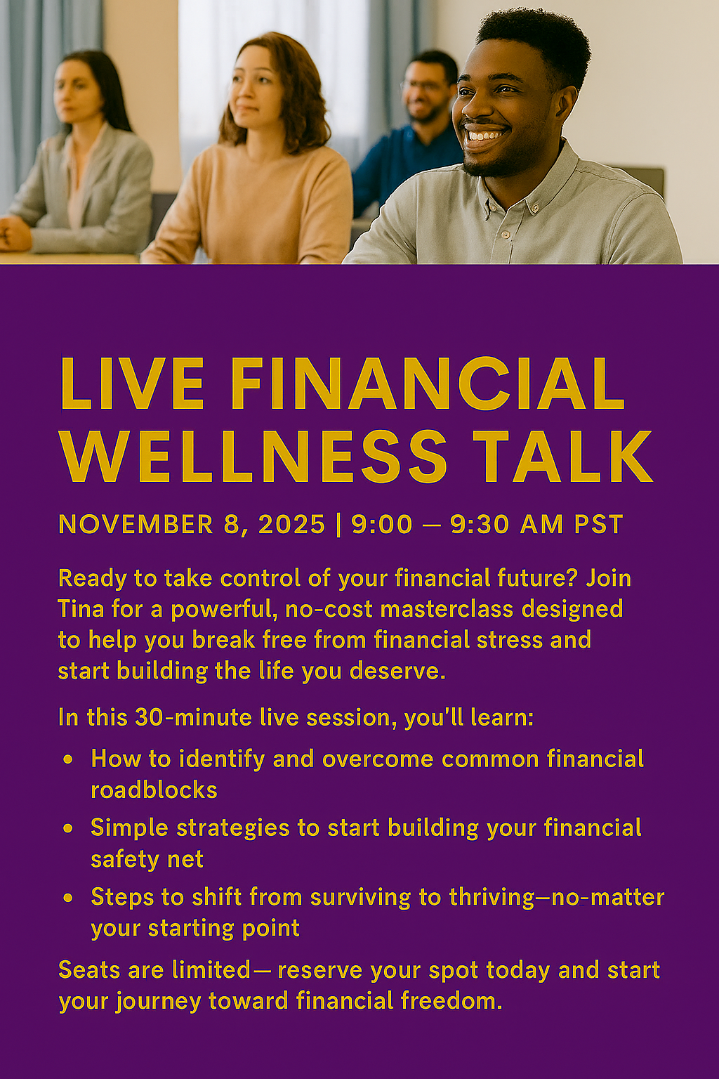 Ready to take control of your financial future? Join Tina for a powerful, no-cost masterclass designed to help you break free from financial stress and start building the life you deserve. Whether you're drowning in debt, stuck in survival mode, or simply ready to grow your money mindset, this session will give you the tools, clarity, and confidence to move forward.